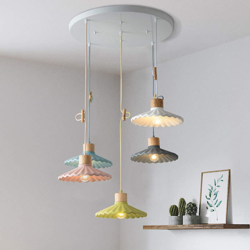 Cement Solid Wood Chandelier Colored Lights